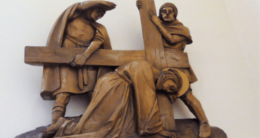 The distinctive sculpture of Our Lady of the Rosary high up on the facade of the church is by the Benedictine nun Mother Concordia of Minster Abbey in Kent (Concordia Scott, 1924-2014), who made many sculptures for churches. A parishioner commissioned the statue as a gift to the parish.